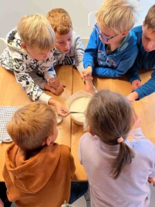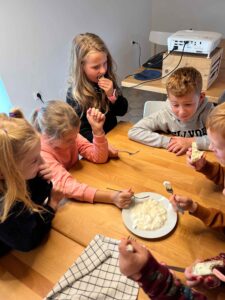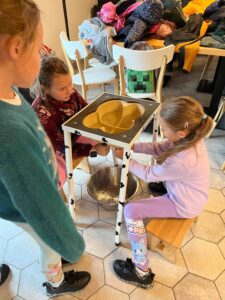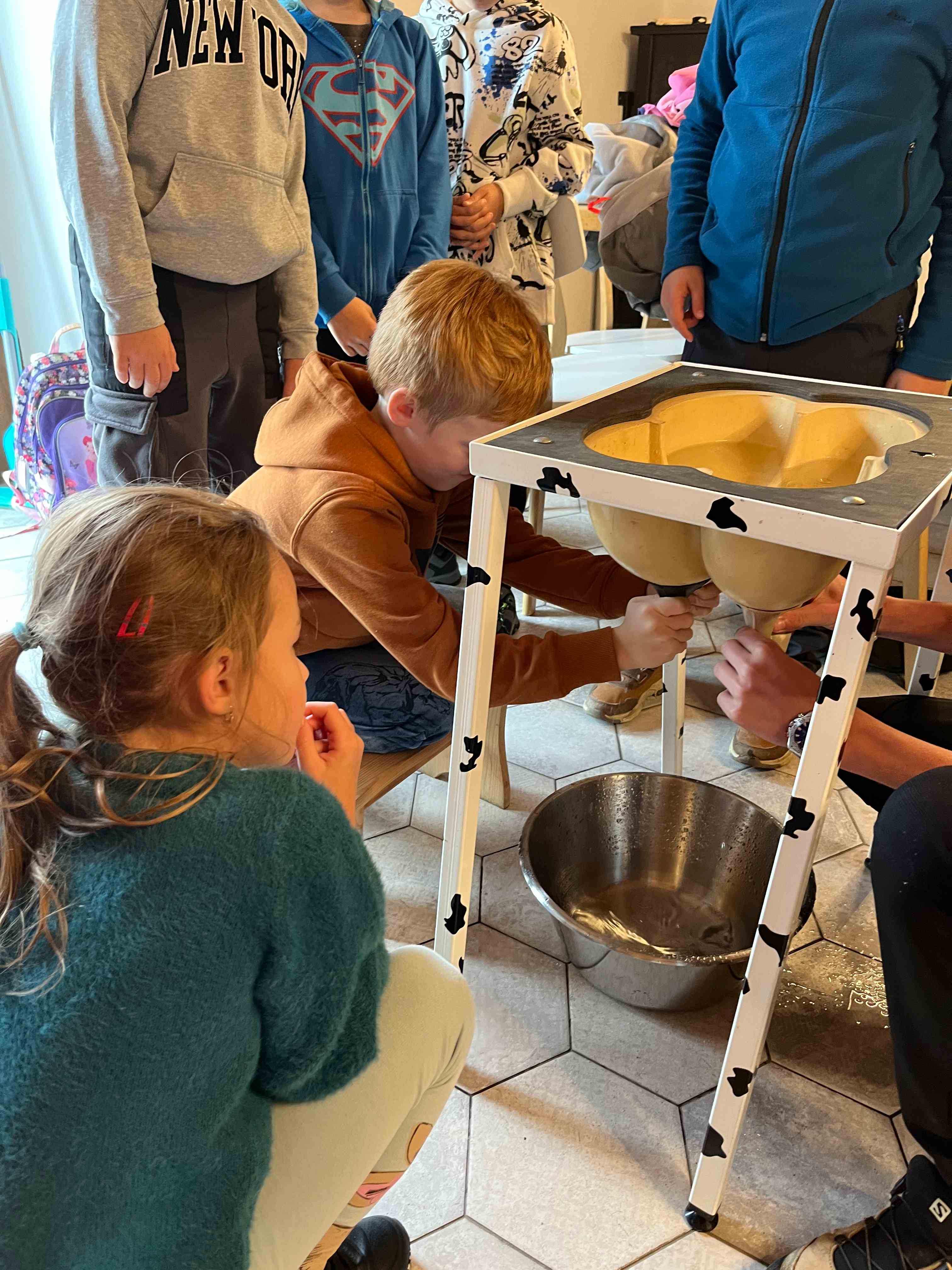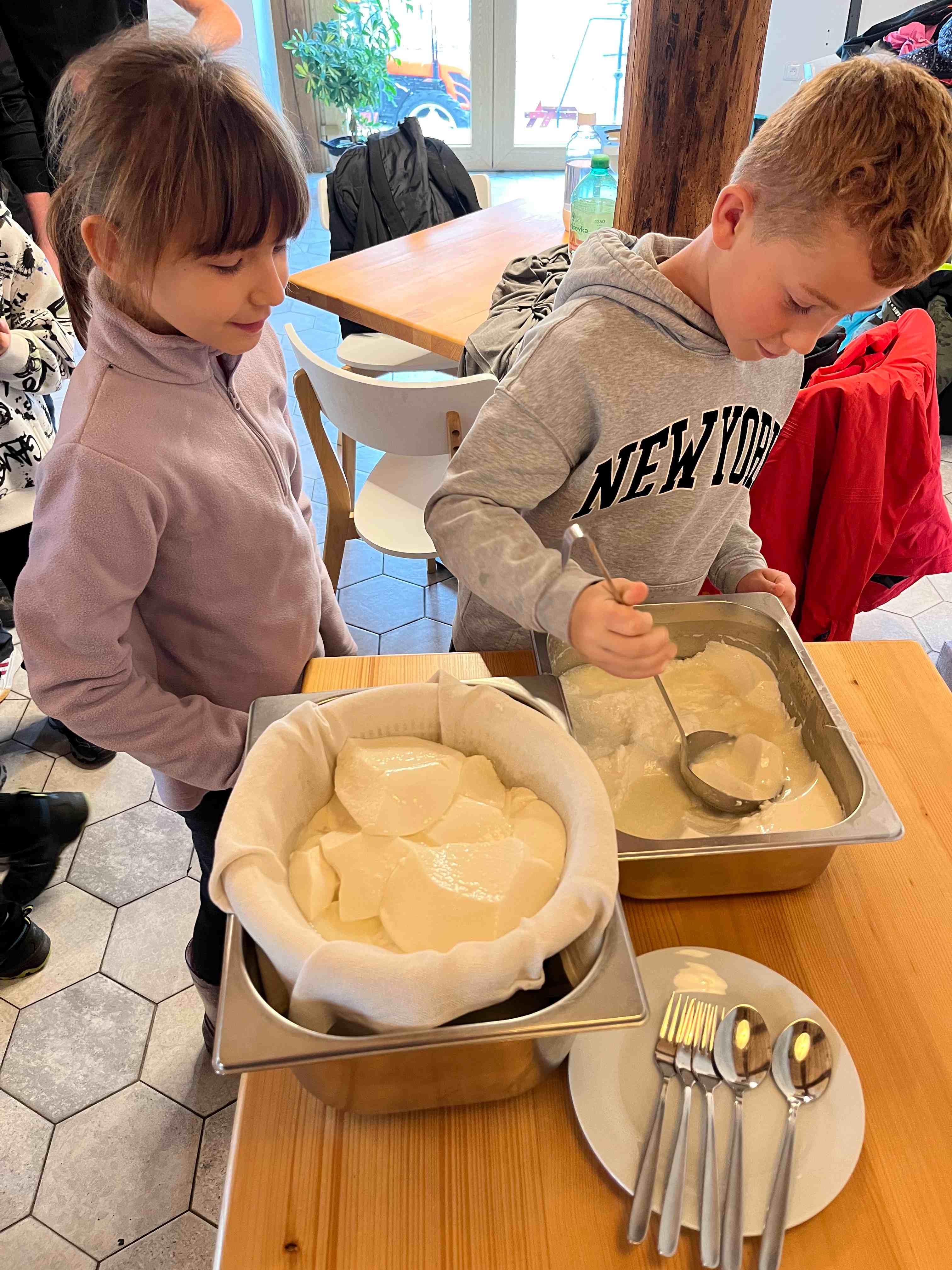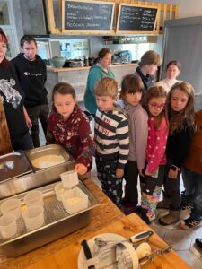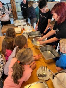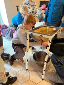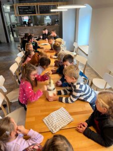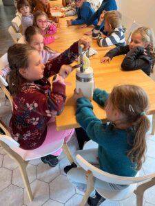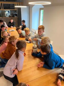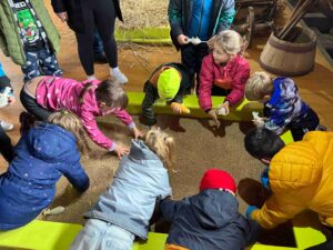 Děti se s nadšením ponořily do tajů zpracování mléka, kde se dozvěděly, jak se z čerstvého mléka stávají oblíbené mléčné výrobky. Kromě poučné expozice v muzeu si naši malí badatelé užili i setkání se zvířaty – s velkou radostí si vyzkoušeli jejich krmení.